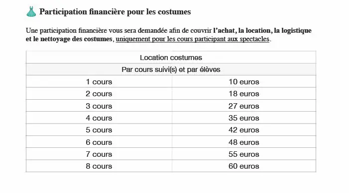 Tarifs rentrée 2025