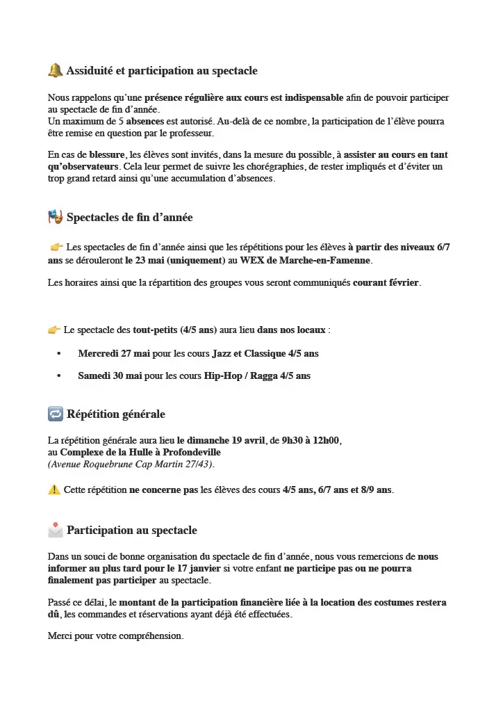 Répétitions et spectacles